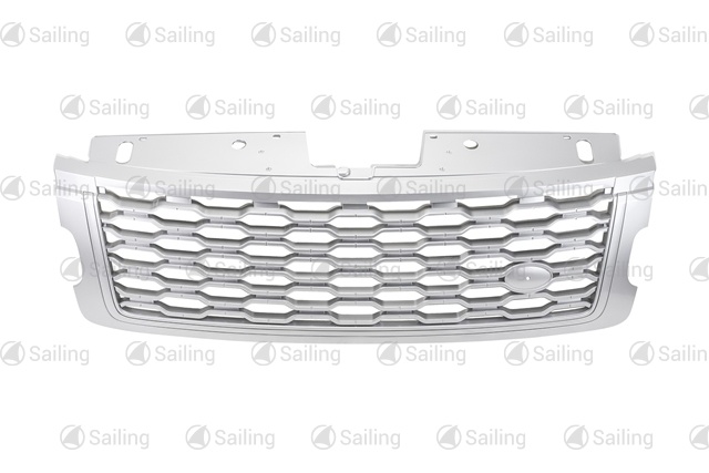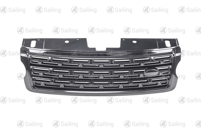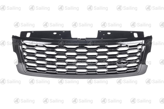 Front bumper grille with fog light holes left